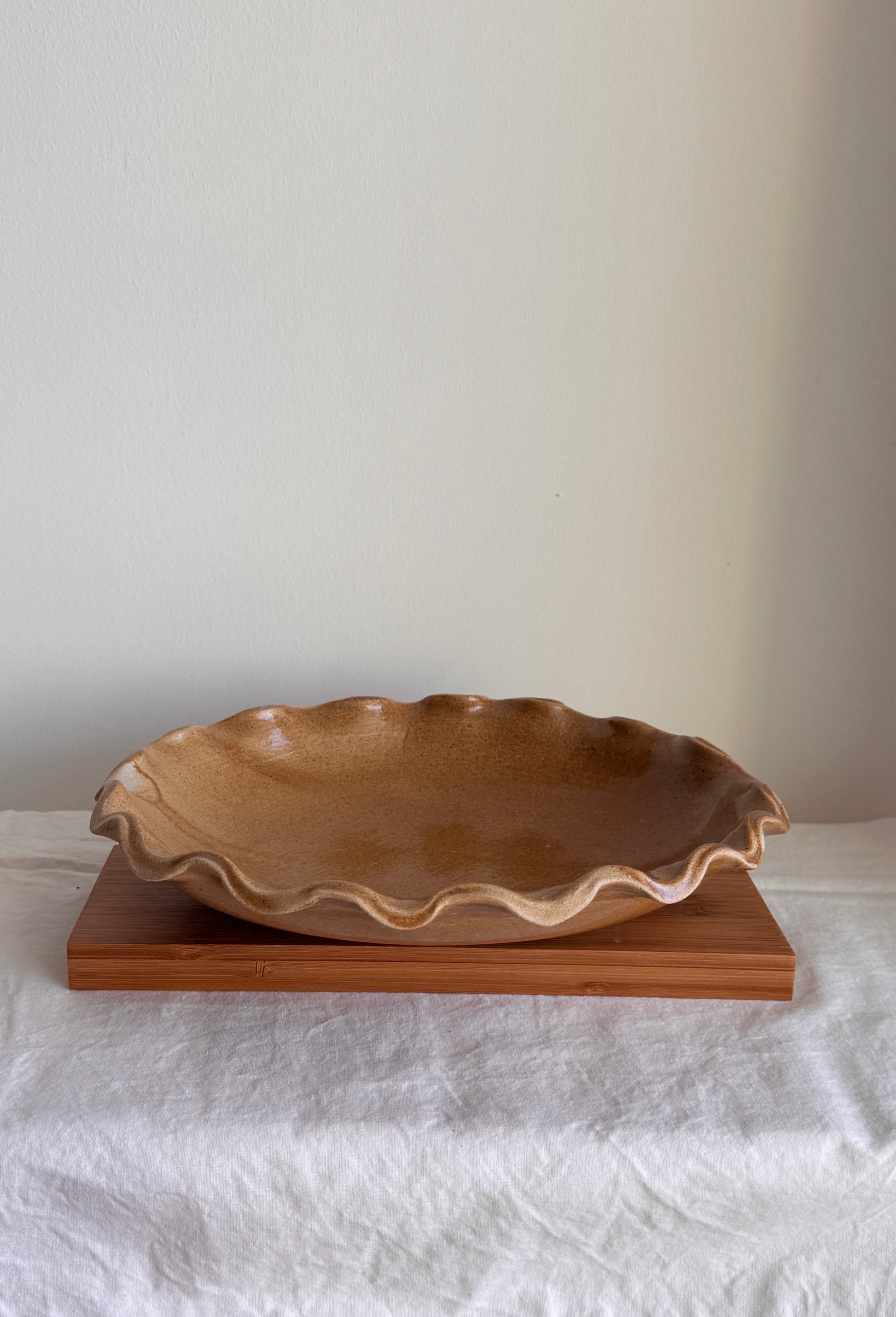 Wheel-thrown stoneware dish with a softly wavy rim.