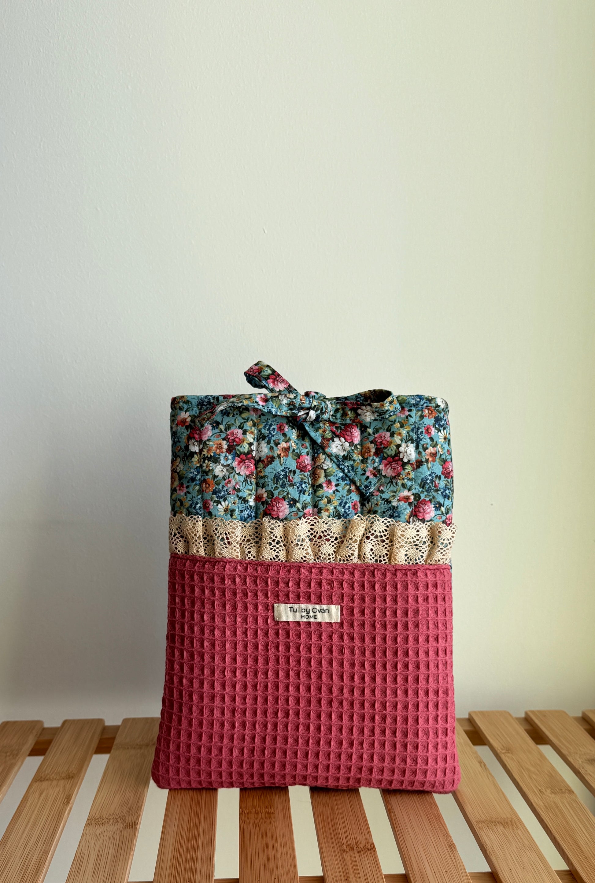 Made with a mix of textured cotton waffle, delicate lace and floral fabrics gathered along the way — little treasures found in different places I’ve visited.