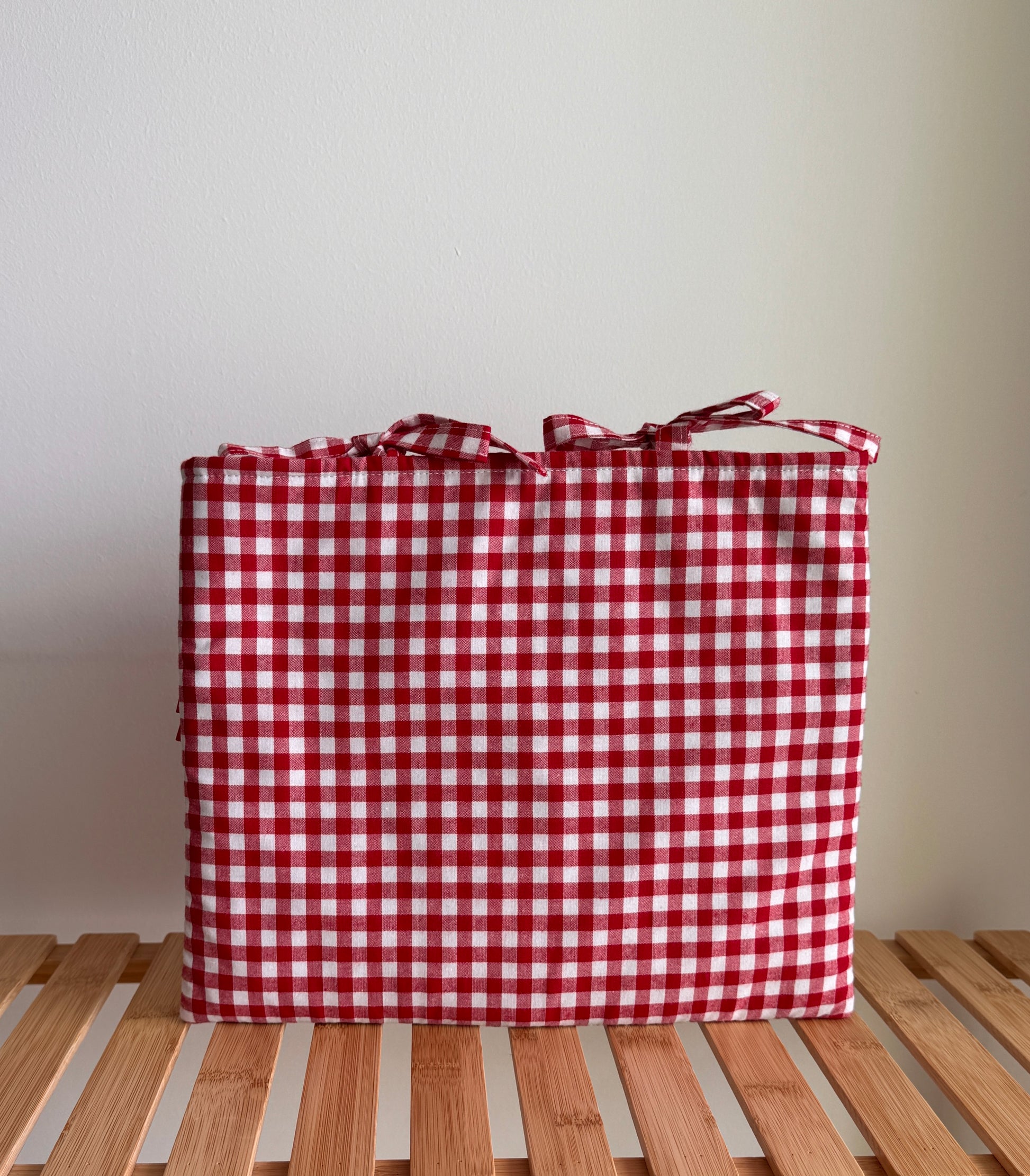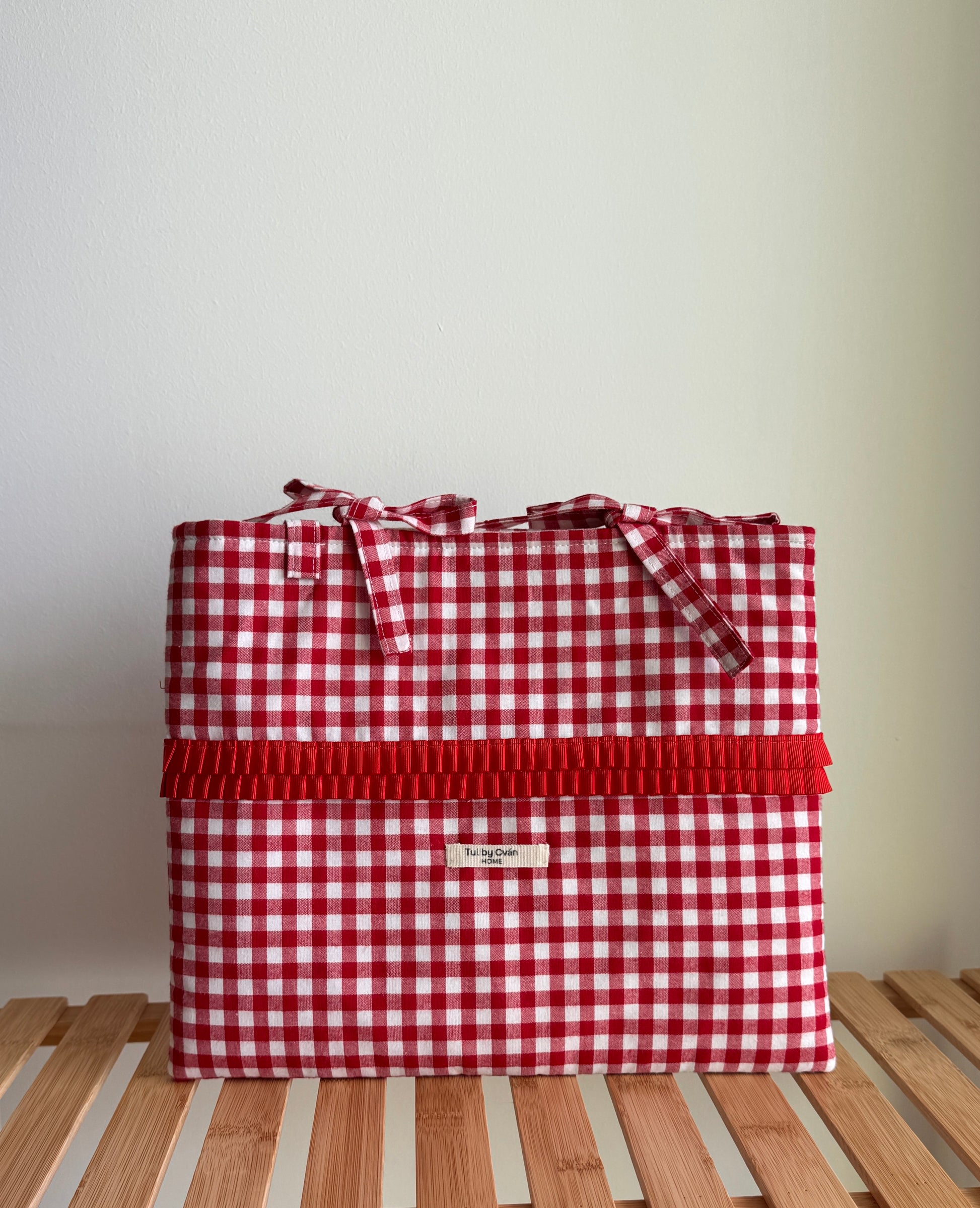 A cheerful gingham sleeve that instantly brings joy — designed to protect your documents, tablet, or laptop, and to make your everyday routine feel a little more special. Its double red frill detail adds a playful, feminine touch that makes it unmistakably unique.