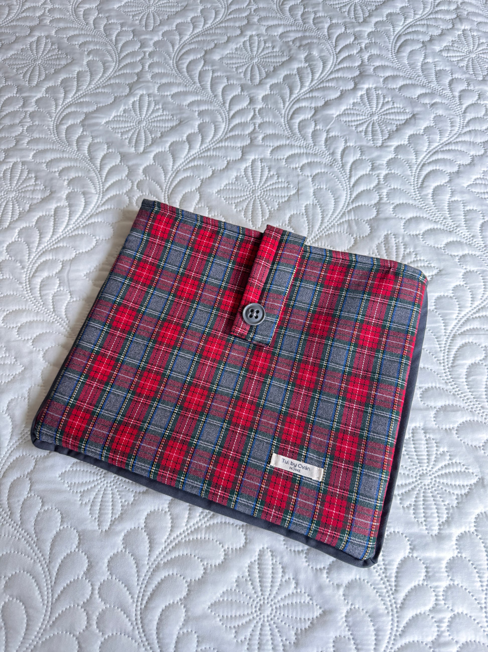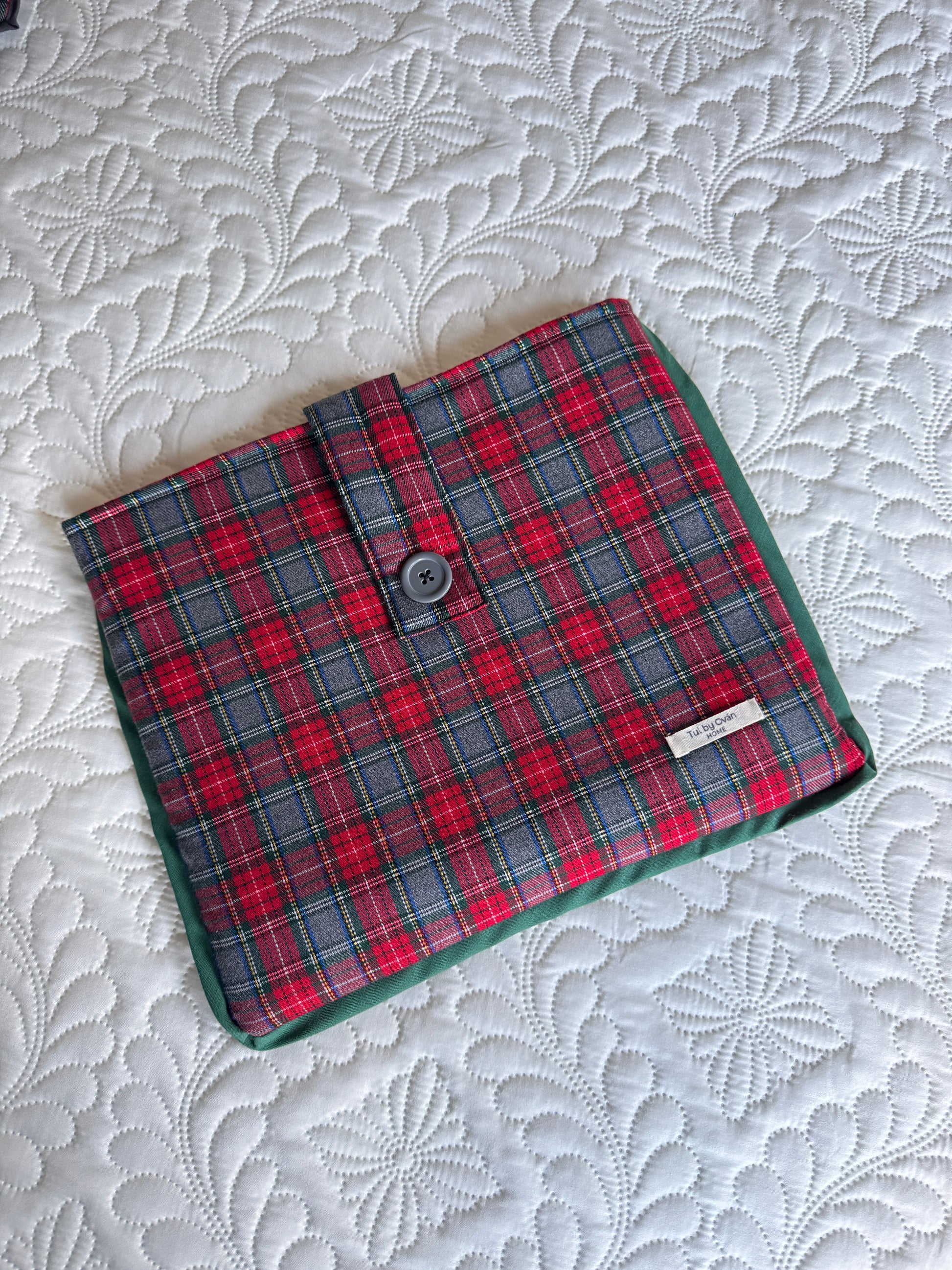 A soft tartan inspired sleeve made with quiet care, designed to protect your iPad, notebook or documents while adding a gentle touch of warmth to whatever you carry.